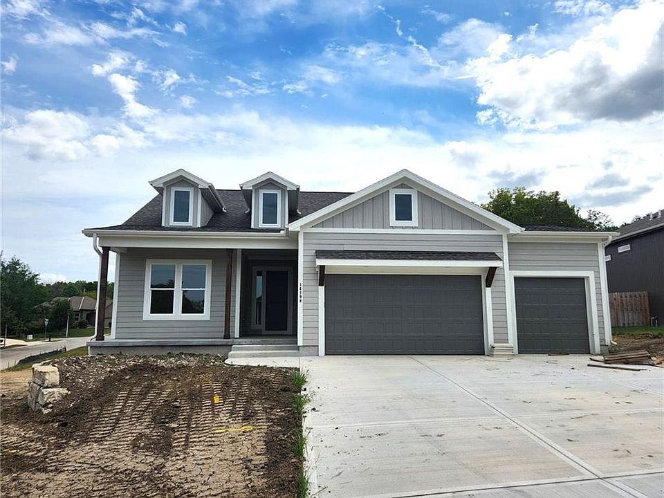 Don’t miss your chance to own this perfect blend of comfort, privacy and convenience! This charming reverse 1.5 residence is ideally positioned on a spacious corner lot in a quiet cul-de-sac — with no HOA fees! Once inside you'll experience thoughtful design and craftsmanship. The home is equipped with Low-E Pella windows, RevWood flooring, extra-deep garages, 8-foot garage and front doors, custom wood cabinetry, designer lighting, and tray ceilings with beams and accents. The great room is highlighted with a floor-to-ceiling stone-wrapped fireplace, and open-concept layout that flows seamlessly into a gourmet kitchen complete with a gas cooktop, built-in stainless-steel appliances, quartz countertops, and a massive walk-in pantry with electrical outlets. Additional luxury touches include a lower-level wet bar with beverage fridge, custom wood-trimmed wall accents, and direct laundry access from the primary closet—all designed with convenience in mind! Outdoor living is equally impressive with an expanded low-maintenance composite deck with stair access to a lower patio, ideal for relaxing or entertaining. In ground sprinkler system to help keep the fully sodded yard looking it's best. This home is in the award-winning Olathe School District and minutes from K-7 and I-35. It provides quick access to nearby groceries and convenient everyday shopping. Enjoy the great outdoors with nearby destinations like Lake Olathe, Nature Center , winery, and the scenic Cedar Niles Trail system. Schedule your private showing today! *Photos of actual home.