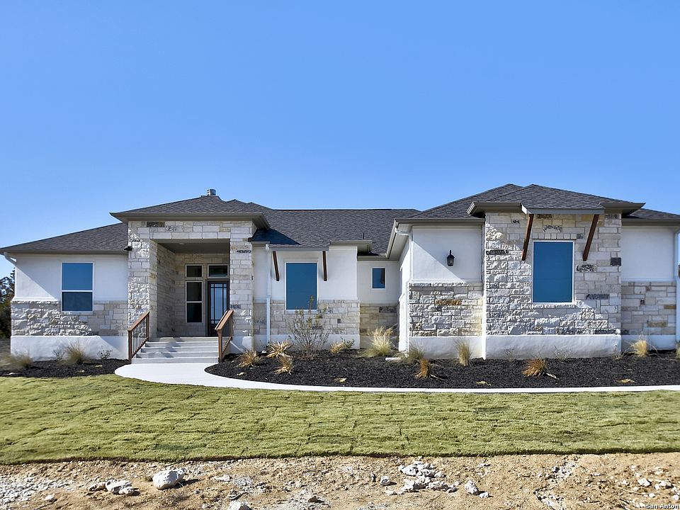 Mystic Shores welcomes you home to 142 Alondra and this one story 2240 sq ft plan with 3 bedrooms, 2.5 baths, private study, extended covered Patio and 2 car garage. Open concept living with 10'-14' ceilings, 8' doors and luxury flooring throughout all living areas home and designer tile in the wet areas. As you enter the gallery you will find a study to one side and 2 guest rooms boasting a Jack N Jill bath all split from the living areas providing privacy for guests. Continue into the Great Room with soaring 14' ceilings, 4 panel door sliders which flows on to an extended covered back Patio. The home features a chef's kitchen with a walk-in pantry, built-in stainless-steel appliances, 36" cook top, 42" upgraded cabinets with soft close, designer hardware, and Omega stone counter tops. The primary suite is to the back of the house with large windows and coffered ceiling. The primary bath lives like a spa offering dual sink vanities with Mirado China bowl sinks, walk in shower and oversized walk-in closet. Create your backyard oasis in this spacious tree studded lot. Mystic Shores is a 7,000 acre lake front community with a 140 acre reserve and a 26 acre waterfront park with pool, tennis courts, basketball, BBQ area and so much more. This Journey Homes property is built with integrity and designed for the most discerning buyer. "Built For What Comes Next".