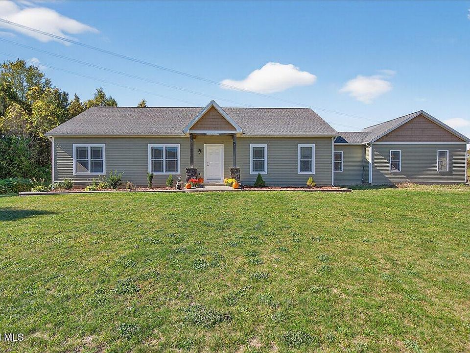OPEN HOUSE SUNDAY 10/12 11AM-1PM! Welcome to your dream home—where open-concept design meets serene country living. Built in 2016, this airy and elegant ranch-style residence is perfectly situated on nearly 5 acres of picturesque land, offering sweeping views and space to breathe. Step inside to discover 5 spacious bedrooms and 3 full baths, thoughtfully laid out for both comfort and convenience. The lower level has a phenomenal family space and a professional gym! The gourmet kitchen(check out that fridge!)and expansive main living areas flow effortlessly, bathed in natural light and designed for easy living and entertaining. Whether you're gathering around the kitchen island, enjoying coffee on the back patio, or simply taking in the sunset views, this home brings the outdoors in with style and grace.