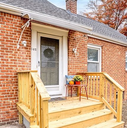 Brick exteriorApplianced kitchenHardwood floorsRemodeled bath
