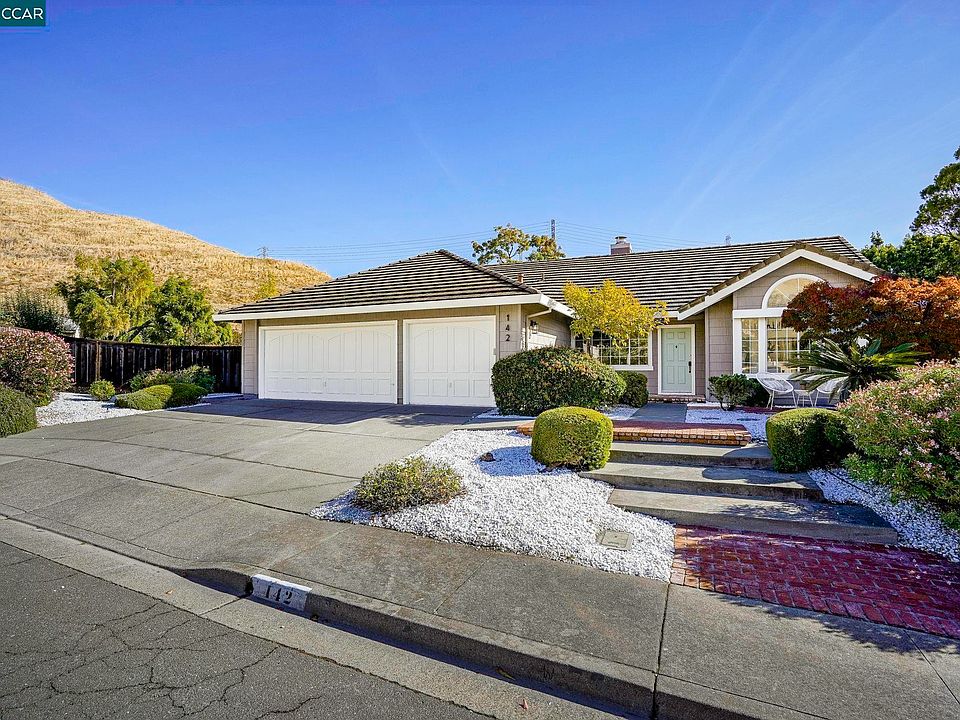 Welcome to 142 Armstrong! This beautiful, single-story 4-bedroom, 2-bathroom home is ideally located at the end of a quiet court. As you enter, you're welcomed by a bright, formal living and dining room that flows seamlessly into the eat-in kitchen and cozy family room—perfect for gatherings and relaxed living. This home features four generously sized bedrooms, including a spacious primary suite with a large ensuite bathroom, complete with a walk-in closet, dual vanities, a soaking tub, and a shower. An additional hall bathroom offers dual sinks for added convenience. Enjoy the ease of an inside laundry room with direct access to the attached 3-car garage. Recent updates include fresh exterior and interior paint, modern lighting, and new flooring in the living room, kitchen, hall bathroom, and laundry room. Outside, the backyard offers a lovely space with a patio for entertaining, a grassy area for play, and a large side yard—all with no rear neighbors, providing extra privacy.