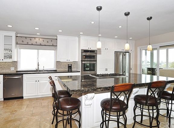 Ocean and Catalina Island views are sure to impress you from this fully furnished, custom-built stunning property offering 3 bedrooms and 2.5 baths. As you enter through the double doors you are welcomed by a bright open floor plan that showcases an abundance of natural light. The fabulous kitchen is complete with beautiful granite counters, stainless-steel appliances and a massive center island with bar seating which will make entertaining a dream. The master bedroom suite is huge and highlights a sweeping ocean view. The dual family rooms offer plenty of space for relaxing and offer a cozy fireplace. Enclosed patio perfect for outdoor living.