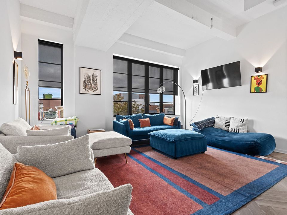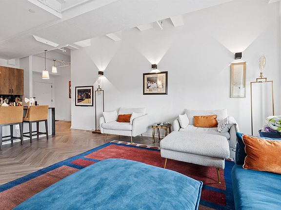 I am thrilled to present a unique opportunity to elevate your lifestyle with Residence 3C at The Packard JC, where modern elegance meets effortless comfort. This stunning two-bedroom, one-bathroom loft-style condo spans 1,006 sqft and is bathed in natural light from expansive windows that complement its soaring 12-foot ceilings. The living room also offers views of the World Trade Center.