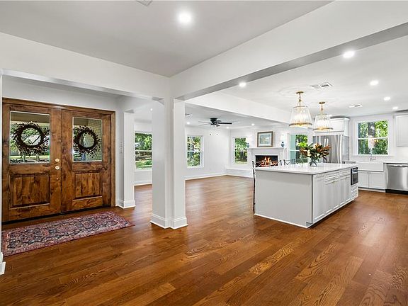 Another restoration by Noel & Kerr Properties, LLC! OPEN HOUSE 9/21/2025 11am-2pm. MUST-SEE newly renovated classic Country Club Estates home! In addition to being on an oversized corner lot on the golf course in a HIGHLY desirable neighborhood, this home has the unique quality of a solid, well-built foundation and structure as well as a completely reimagined and expertly designed interior! The yard is vast and has newly installed professionally designed landscaping around the front and sides of the home complimenting the charm of the bridge and brick pathway. Upon entering the home, you will see the well-designed floorplan walks you through a small foyer where you can see the living room, kitchen, dining, and sunroom all at once. Although the floorplan could be considered an open concept, it also has a subtle separation of rooms to give them their own defined space with the kitchen as the central star of the show! The laundry room has PLENTY of space for anything from shelving to extra fridge/freezer, built ins, etc. The guest bath has beautiful basket-weave marble floors and designer finishes. In the primary suite you will find another rarity- a huge walk-in closet with windows! It has custom wooden shelving and plenty of room for additional built-ins, a dresser, vanity, etc. The primary bathroom is stunning with designer finishes and an oversized walk-in shower and gorgeous vanity and light fixtures.