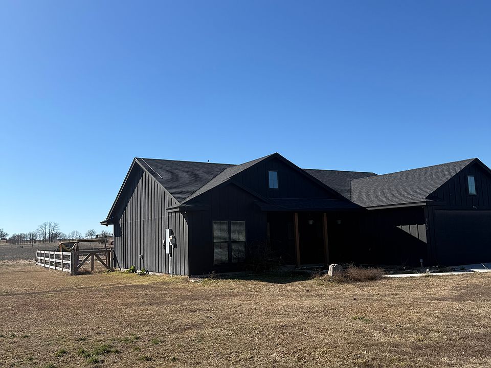 Beautiful matte-black modern farmhouse situated on 2 acre in the peaceful GreenWood community, offering a relaxing country feel with easy access and a short commute to major cities. This updated home features modern fixtures, custom cabinetry, granite countertops, luxury vinyl plank flooring, and a bright, open floor plan designed for both comfort and entertaining.