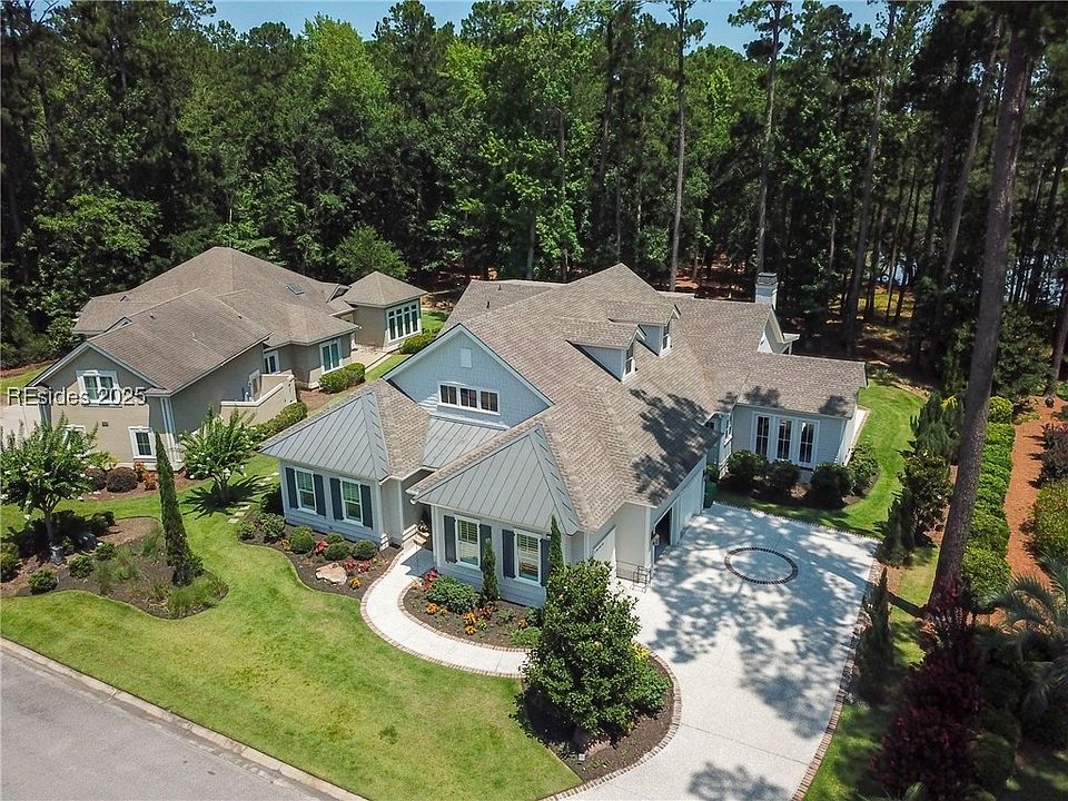This distinguished and luxurious custom home in the prestigious Riverbend section of Sun City offers elegance at every turn. It features 4 bedrooms, 4 baths, dual primary bathrooms, and wet room with soaking tub. Living room features 12' coffered ceilings, breakfast area and fireplace. The gourmet kitchen boasts Wolf/Sub-Zero appliances and a huge walk-in pantry. Enjoy the picturesque courtyard with plunge pool. Casita/Guest Home has private entrance. Screened porch, outdoor patio offer serene wooded-to-marsh views.