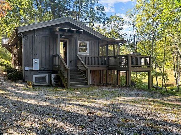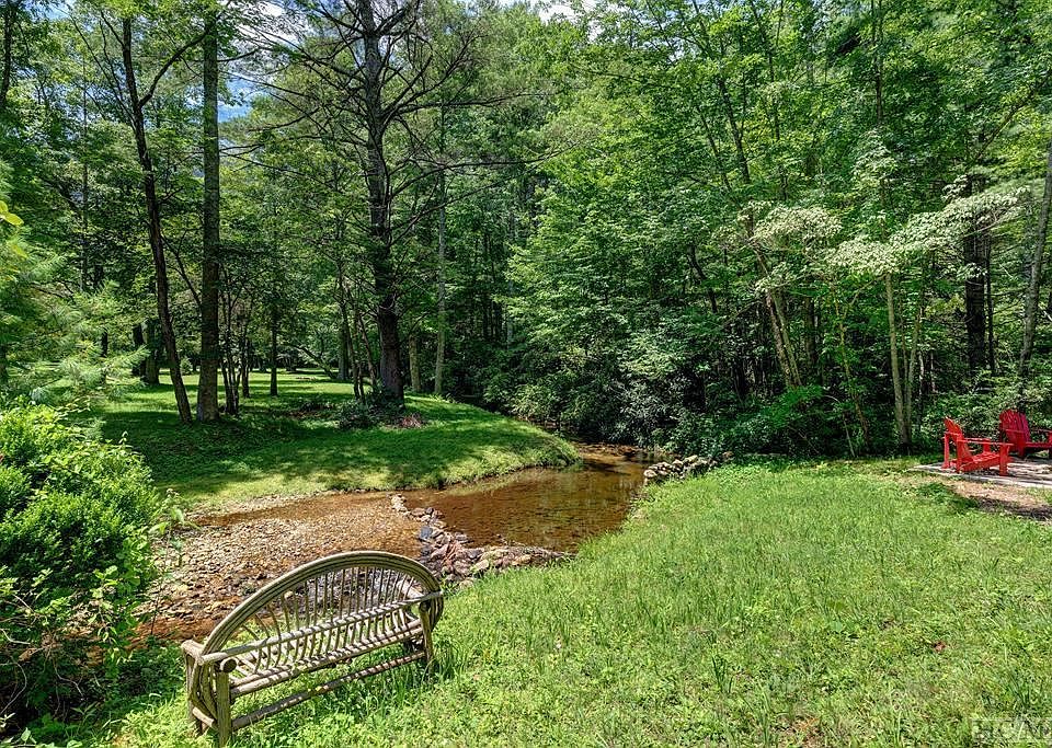 Quaint 1270 square foot creek side mountain cottage with tons of charm located in the historic Horse Cove area of Highlands. As you enter the home you are greeted by vaulted ceilings with exposed beams, rich dark wood floors, a stunning fireplace and views of the outdoors. The open concept flows seamlessly from living to dining to kitchen with a laundry room tucked away off of the kitchen and a powder room off of the living area. Off of the main level you'll find a screened in porch with additional living and dining space. The bedrooms are found on the terrace level and have high ceilings for a very spacious feel. The primary suite opens out to another screened porch, has a fireplace and private bathroom with heated floors, double sink vanity and stunning granite and tile. The guest bathroom also has heated floors and the guest bedroom is inviting and opens up to the screened porch. Open the bedroom doors and take it the sweet sounds of the creek, perfect to fall asleep to or wake up to. Enjoy the outdoor setting by the stone creek-side fire pit area which is great for entertaining or just relaxing. The setting is nothing but beautiful with Edwards Creek as the backdrop and some mountain views. The neighborhood is laid back and wonderful for those who like to take walks. This unrestricted home is being sold fully furnished, has fast high speed internet, is close to great hiking, river and waterfall trails, and is only 8 minutes to Main Street.