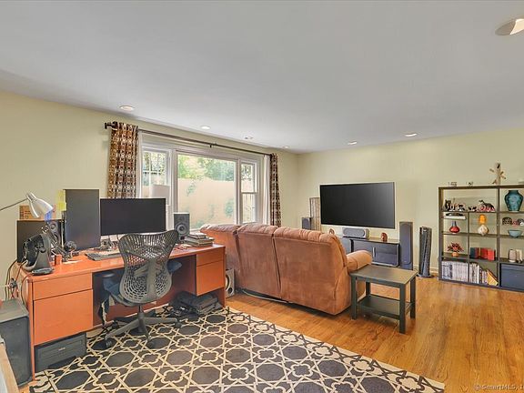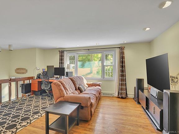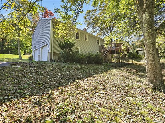 This lovely 3-bedroom Raised Ranch is situated in a wonderful neighborhood in Mt. Carmel on a large half acre lot. This well-maintained home offers so much to love with its cheerful and bright interiors. The open floor plan is ideal for gatherings and includes the family room, dining area and kitchen. From the dining room, take dinner outside through a slider to your elevated deck offering quiet and privacy. The large kitchen is ready for anything with space for an island, or eat-in area. Along the hallway, you'll find 3 well-sized bedrooms and a full guest bathroom. The primary bedroom has a remodeled en-suite bathroom with shower. Check all your boxes with oak hardwood floors, 2-car garage, central A/C, and the low maintenance benefits of vinyl siding, newer doors and windows as well as city water and sewer. The lower level offers potential for an additional 600+/- s.f. of finished space, so finish to suit your needs -recreation, media or play room. A large room is already framed out, and it showcases a wonderful brick wood burning fireplace. There's also a separate storage room with laundry area and a walk-out to the backyard as well as interior access to the 2-car garage. Many updates include new hot water heater (2024), newer roof (2018), repointed chimney, and new insulation. Close to Quinnipiac and Sleeping Giant and convenient commuting location and access to New Haven!
