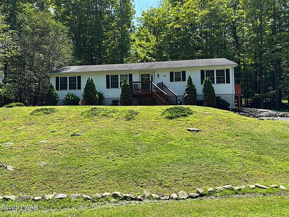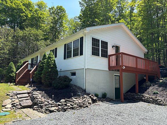 Immaculate 3 Bed 2 Bath ranch on a private lot with Lake rights to Lake Wallenpaupack. Relax and entertain on the large screened in porch and enjoy mother nature. Plenty of room to expand with a full walk out basement ready to finish into a family hang out space. Lake access is a short drive on your ATV or golf cart for fishing, swimming and boating! Did I mention a club house with indoor pool. Add this to your list of places to see it will not disapoint.