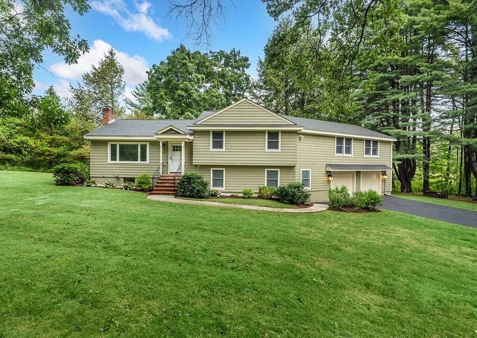 Expanded & updated open concept multilevel home on a gorgeous private lot! Features hardwood flooring, a cherry kitchen with tons of storage, stainless appliances, brand new fridge, stove with hood, and breakfast bar- open to the living room with fireplace and dining area- perfect for entertaining! This spectacular home has four spacious bedrooms with ample closets, a top-floor laundry room, and a gorgeous cathedral ceiling primary suite with walk-in closets. Primary bath with dual sinks, a free-standing claw foot tub, a shower stall. Gas heating, central air! Walk out lower level finished family room, half bath, mud room, and entry to garage. Additional unfinished lower-level game/ storage room/workshop with cedar closets. Oversized 2 car garage with added work area offers plenty of space. Gorgeous private yard with flowering trees and shrubs and plenty of garden space. Close to desirable Claypit Hill school, the Wayland country club & route 20! OH Sat 1:30-3:00, Sun 11:30-1:00