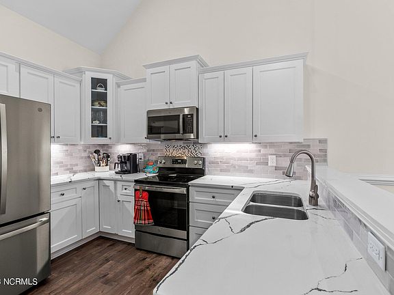 Adorable custom built home with a craftsman style vibe, built in 2022, is legitimately move-in ready! Conveniently located, you can be in downtown New Bern in just 6 minutes or at the Slocum Gate of MCAS Cherry Point in 16 minutes. The color choices are clean and refreshing, inside and out. This home boasts a tankless natural gas water heater, Hardie Board siding, an inviting front porch, a HUGE covered back patio, and newly installed gutters. On the inside, you'll find low maintenance LVP flooring throughout except for the carpet up the stairs and in the upstairs Bonus Room, some crown and chair molding, wide baseboards, granite kitchen countertops and a master bathroom granite double vanity top, subway tile backsplash in the kitchen and as the master tub's surround, zoned HVAC, high cathedral ceilings in the family room, a natural gas fireplace, and walk-in attic storage. Everywhere you look, it's just crisp...from the colors, to the fixtures, to the cabinets. This is one of the few custom built homes in the neighborhood which means more attention to detail and a more unique floor plan. Schedule your showing today because this one will not last long!