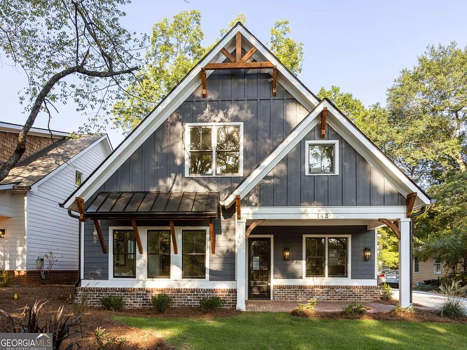 A quiet, tree-lined street welcomes you into this brand-new, sophisticated home in Decatur. Award-winning Lockman Homebuilding has built a gorgeous 5 Bed, 4.5 Bath with exceptional features like upstairs and downstairs laundry rooms, a bookcase opening up to a hidden storage room, and a primary suite on the main floor! Interesting architectural details like cedar brackets, metal roof overhangs, and custom exterior lighting make this home a gem. Its roomy front porch provides the perfect spot for catching up with neighbors. The entryway is accented with exposed beams, built-in bookcases, and an art wall with custom lighting. The first-floor office features French doors, built-in bookcases, and soothing natural light. The spacious dining room has thoughtful trim accents and flows into the kitchen for exceptional entertaining. The chefCOs kitchen features floor-to-ceiling custom cabinetry and top-of-the-line JennAir 48C Professional Grade Fridge and appliance package. The oversized island with custom lighting and white oak accents make this kitchen one of a kind. The mix of white oak and sand-colored custom-built cabinets accented by champagne gold hardware and lighting are tied together with the custom hood. The whimsical walk-in pantry features a glass door, custom cabinets, ForumQuartz countertops, custom shelving, and a beverage fridge. For relaxing, the open-concept living room features a gas log fireplace flanked by built-in cabinets with artful lighting. For more lounging and entertaining, the vaulted screened porch just off the living room pulls you towards the private backyard and features artful brick tiles. The perfectly appointed back entry hallway has custom-built cabinets, hooks, and a large bench. A stately checkered floor runs through to the brightly lit first-floor laundry room. The spacious laundry room has everything you need: custom white cabinets, champagne gold accents, a folding counter, and a soaking sink. The first-floor powder room with custom vanity and marble countertops is perfect for guests. The spacious primary suite is conveniently located on the first floor. Light filters through the windows, highlighting the custom-trim accent wall and the overall comfort of the space. The primary suite bathroom features a walk-in frameless glass shower, a large soaking tub, a spacious double vanity, custom cabinetry, marble countertops, champagne gold plumbing and hardware fixtures, and oversized mirrors. The primary suite walk-in closet has well-designed built-in shelving for ample storage. The water closet is separated for privacy. Upstairs, the loft is a perfect second living or rec area. It features an accent wall and 2 walk-in storage areas. One of these is SECRETLY accessed through a built-in bookcase. Each of the three bedrooms has a private full bathroom with artful tile and cabinets. The second-floor walk-in laundry room will keep your home running smoothly, while the upstairs private office or exercise space lets buyers make this house into the home they need. A third oversized finished storage/office/closet space is off the back bedroom. YouCOll have a place for everyone and everything! The home's backyard opens into the fenced-lined yard and detached garage. Private parking is accessed through a quiet back alley. LockmanCOs EarthCraft-certified home means you can rest easy knowing your home has been built to the highest environmental and safety standards. Energy-saving fans, tankless water heater, double-paned windows, and spray foam insulation make this an efficient, effective, and sustainable home. 142 Greenwood is a walkable distance to DecaturCOs award-winning restaurants, shops, and highly-rated schools. The Decatur community is welcoming, with parks, recreation, festivals, and more. Decatur is conveniently located near public transportation, Emory, the CDC, and downtown Atlanta.