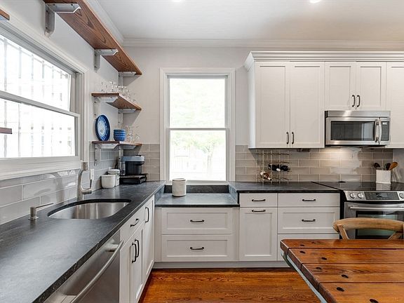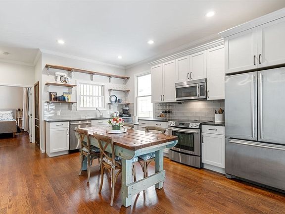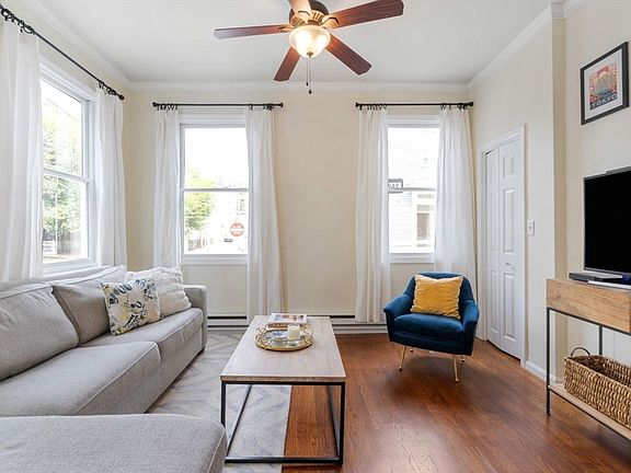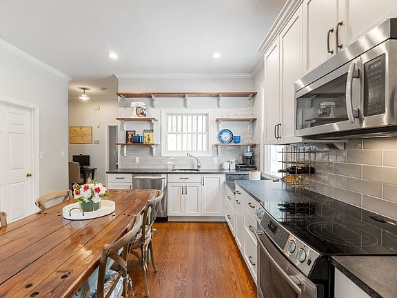 This stunning, corner exposure, 1BR/1BA condo blends classic elegance with modern amenities. Sunlight streams into the open living area, highlighting beautiful hardwood floors and crown molding. The large, thoughtfully designed kitchen features granite countertops, glass subway tile backsplash, stylish cabinetry and stainless appliances - ideal for the aspiring chef. An office nook off the kitchen is perfect for those who work from home. The spacious primary bedroom is tucked at the rear for privacy and features a double wide custom closet. The well-appointed full bathroom has modern fixtures and great storage in both the vanity and linen closet. This home also boasts a private deck just off the kitchen, perfect for relaxing on warm evenings. Large private storage and washer dryer just one floor below complete this offering. Close to town center shops, restaurants and transportation.