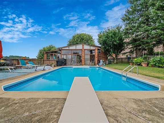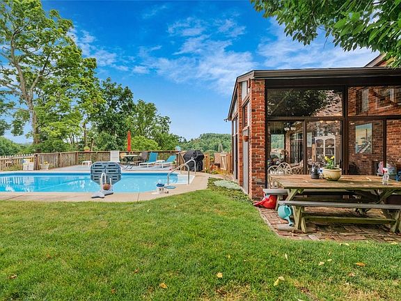 Lovely 3 bedroom brick, Tudor style multi-level home on beautiful lot with in ground pool. Extremely well equipped newer kitchen with corian counters, breakfast bar and stainless steel appliances Fabulous living room with beautiful hardwood floors and vaulted beamed ceiling. Hardwood floors and vaulted ceiling also in dinning room. Family room with gas fireplace. Master bedroom features 2 closets. Magnificent patio enclosure with access to pool and back yard. Air conditioner is 1 year old. Shed and pool equipped stay.