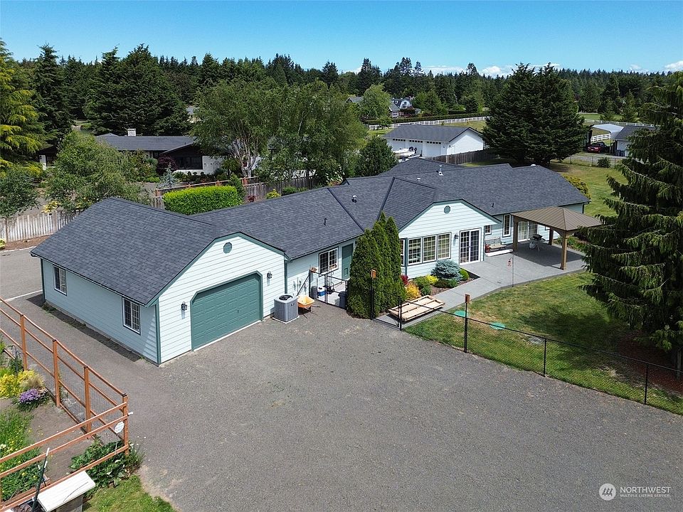 LOTS OF ROOM TO ROAM! Come experience the comfort & beauty of this single level 3 bdrm 2 ba home on 1.25 acres. Hardwood floors, updated bathrooms, nice kitchen, large pantry, tons of natural light, SS appliances, tile countertops, breakfast nook, great room, skylights, & vaulted ceilings. Attached 2 car garage +733 SF shop, covered RV parking & two other outbuildings. Free standing propane stove w/owned 100 gal. propane tank for additional or back-heat source. A deep-well hand pump ensures you’ll never run out of water even if the power goes out. Fenced, deer protected gardens, mature landscaping, various fruit trees, deck & new gazebo.