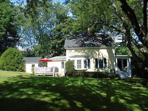 For close to a half century this charming Colonial styled Cape has been owned & beautifully maintained by the same owners. It is easy to feel the comfort & love as you step inside these walls. The new owners will make fond memories here for years to come. The design of the home offers more living space to the 2nd floor than a traditional Cape Cod. As you enter the rear of the home from the private sundeck you will find a convenient mudroom with a built-in desk. It would be quite simple to add some additional shelving or hooks to hang the outside gear. Just ahead you will step into a room which doubles as an office & laundry room. The washer & dryer will remain with the sale. Coming into the kitchen you will notice all newer stainless steel appliances, open see through glass upper cabinet doors, hardwood flooring & ample space for eat-in dining. As you enter the next room you could either leave the room as a den or easily convert it over to a formal dining room. There are built-in shelves & cabinets as well as a sunny bay window area with seating. This area is a total delight! The living room displays lovely hardwood floors, a corner brick hearth & a Vermont Castings Vigilant wood stove to warm those winter days & nights. The 1st floor 1/2 bath opens from the kitchen to the front hall entry for convenience & versatility. Once you are on the 2nd level you will find 3 lovely bedrooms & a full bath. The 2 smaller bedrooms each share the same entrance but they both offer nice size closets. With a little creativity & ingenuity a wall could easily be added to create a more private entry. You could also use one of the rooms as a guest/bonus/craft room. Your options are endless. Everyone will love spending time relaxing on the covered front porch which offers so much added privacy with the extension of the mature hemlock tree hedges. Morning or evenings will make an added pleasure to your day. The home sits on the right side of the lot with beautiful grounds. New windows too