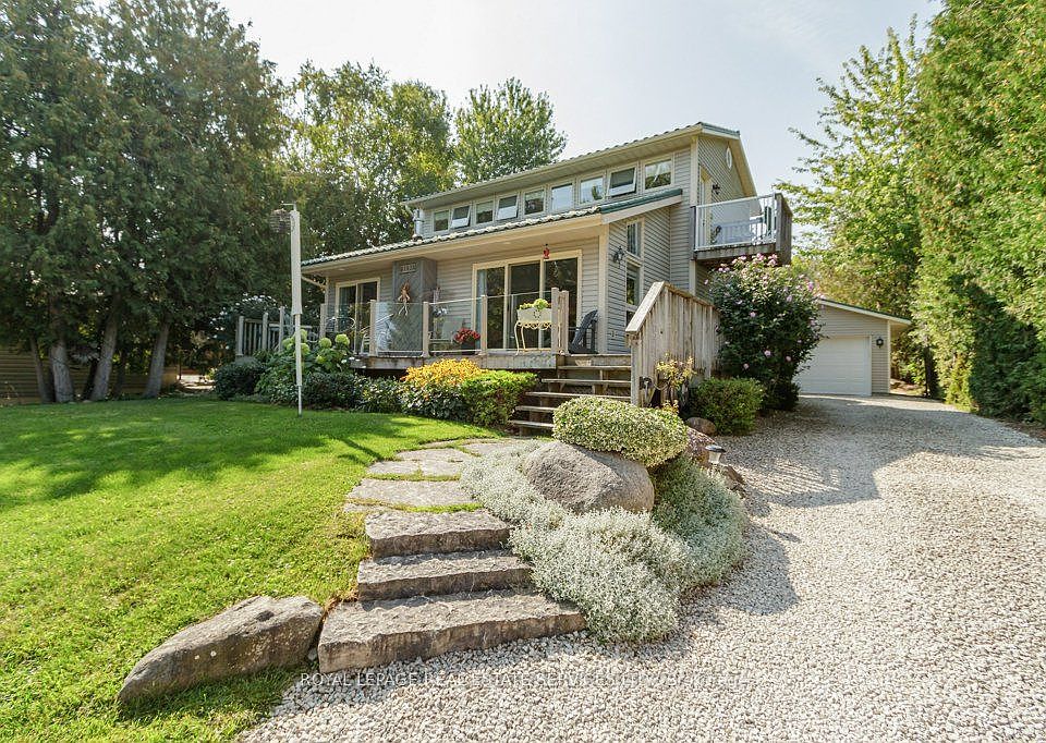 Meticulously Maintained & Fully Upgraded Gem Steps from Georgian Bay. Welcome to this beautifully updated 2-bedroom, 2-bathroom home situated on an oversized lot directly across from the stunning shores of Georgian Bay. Every inch of this home showcases quality workmanship and thoughtful upgrades, offering both comfort and functionality in a truly picturesque setting. Step inside to find a bright and inviting interior with an abundance of natural light, fresh paint, and new hardwood flooring throughout the main level and fresh carpet on the second floor. The updated kitchen is both stylish and practical, ideal for entertaining or quiet family meals and comes complete with updated cabinetry, quartz countertops, and stainless steel appliances. Both fully renovated bathrooms reflect modern design and convenience. The home also features a fully finished basement, providing additional living space with in floor heating to ensure warmth and comfort in the winter months. There is an open space on the second floor that can be used as a home office or closed off to make a third bedroom. Outdoors, enjoy the front deck complete with a new glass railing, peace of mind of the steel roof, mature perennial gardens, a thriving vegetable garden, and plenty of storage with three sheds and a detached two-car garage. With front and rear access to the property, the pull-through garage is a dream come true for anyone with a boat or trailer. Whether you're looking for a year-round residence or a weekend retreat, this home combines peaceful living with proximity to nature and the unbeatable views of Georgian Bay.Don't miss your opportunity to own this exceptional property where pride of ownership shines inside and out.