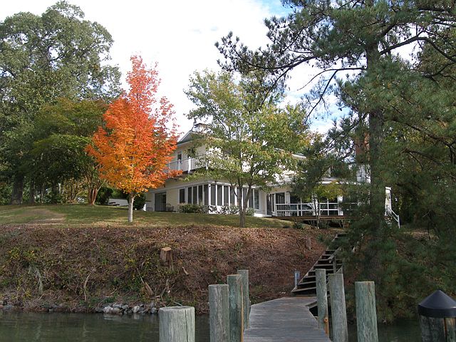 Great location on Carter's Creek w/over 300' shoreline. Enjoy wide views, pier with 8' MLW. This split level entry home offers 4 bedrms, 3.5 baths on 2.8+/- acres. Spacious rooms, hardwood floors, Family room, Living room. Walk to town. Property is being sold as is.