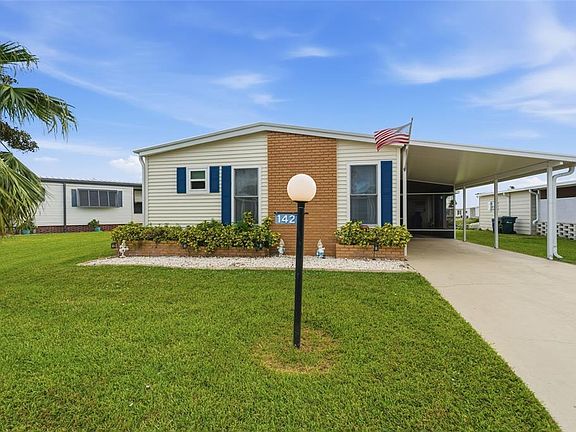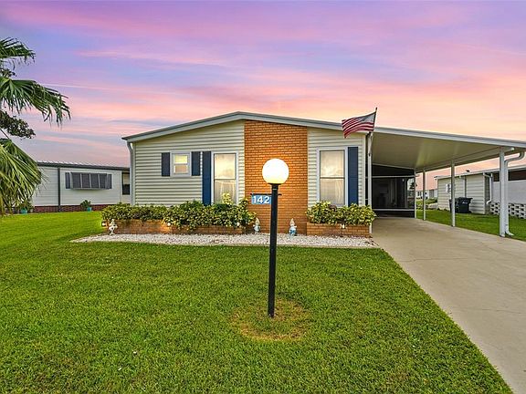 Welcome to 142 Lazy River Rd, a place where every day feels like a vacation and life moves to the rhythm of the water. Tucked along a peaceful canal just seconds from the Myakka River, this beautifully cared-for home is fully furnished and move-in ready. From the moment you arrive, you’ll feel the calm of a waterfront lifestyle waiting to unfold. Imagine mornings that begin with coffee in the lanai and evenings spent watching soft golden light dance across the water. Step inside and take in the light, open feel that makes this home so inviting. The expansive Florida room along the back of your home has vaulted ceilings captures panoramic canal and lake views, creating a serene space to read, relax, or host sunset get-togethers with friends. Every detail has been thoughtfully updated. The roof, AC, and carport were replaced in 2018, entire carport/porch screened in in 2024, and the flooring throughout has been upgraded to luxury vinyl with ceramic tile in the kitchen and baths. Master/Primary suite has an updated ensuite bath with a rain showerhead and bench seating in your lovely all-tile walk-in shower. Both bedrooms include walk-in closets, and the spacious kitchen features a pantry, breakfast bar, and plenty of cabinet space for those who love to cook or entertain. Soft neutral tones and coastal finishes make the entire home feel crisp, comfortable, and effortlessly Florida. Outside, there’s room to breathe and enjoy. The widened driveway, two storage sheds (one with a washer/dryer), and patio space make it easy to host a barbecue, tinker on a project, or simply relax after a day on the water. Don't forget the roll down sunshades to block sun or just create additional privacy to enjoy all that this intimate screened-in and covered space has to offer! Lazy River Village is one of Southwest Florida’s most sought-after 55+ waterfront communities, known for its warm spirit and endless opportunities to stay active. Residents enjoy pickleball, tennis, shuffleboard, putting greens, a heated pool, fitness center, kayak launch, woodworking shop, and a marina with 38 boat slips available for rent. There’s even storage for your RV, trailer, or boat, so you can bring every bit of your Florida lifestyle with you. Low monthly fee includes lawn care, cable, and internet, keeping your days simple and stress-free. And when you’re ready to explore beyond the neighborhood, you’re just minutes from Downtown Wellen Park, CoolToday Park (home of the Atlanta Braves), Warm Mineral Springs, and the white-sand beaches that make this area famous. Whether you’re dreaming of a sunny winter escape, a full-time retreat, or the perfect place to slow down and savor every day, 142 Lazy River Rd offers the best of waterfront living, comfort, and connection. It’s not just a home—it’s the Florida lifestyle you’ve been waiting for!!