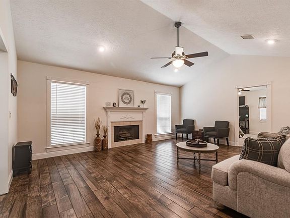 Gorgeous farmhouse style home with inviting covered front porch sitting on 5 acres that are completely fenced and UNRESTRICTED! Recent upgrades include tile flooring throughout main areas of home, fresh paint, new AC/furnace and duct work; formal dining room off kitchen; spacious family room with cozy fire place; gourmet kitchen with updated appliances, under and over counter lighting and huge walk in pantry! Split floor plan; primary bedroom with front yard view, private bath with double sinks, soaking tub, separate shower and large walk in closet; secondary bedrooms with jack and jill bath; study or 4th bedroom as you enter the home; additional storage and third bath as you head out to the garage; RV hook up; Barn/storage; horses, chickens, and goats allowed! Stunning property with plenty of trees and space for children and fur babies. Very energy efficient with closed cell insulation recently installed under home. NO FLOODING! Huffman ISD. Definitely a WOW property!