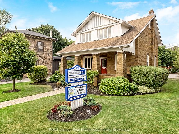 Historic Charm Meets Modern Comfort in the Heart of Milton. Welcome to 142 Martin Street, a beautifully restored century home (circa 1920) located on a generous lot just steps from downtown Milton. Rich in character and timeless appeal, this stately property boasts original interior doors, trim, and a grand staircase that have been lovingly preserved. The refinished original hardwood floors and soaring ceilings create a warm, elegant atmosphere, while the inviting front porch adds a touch of classic charm. Thoughtfully updated for todays lifestyle, the home features modernized essentials including the roof, windows, electrical, and HVAC systems offering peace of mind without compromising its heritage. Currently configured as a professional office space, the layout provides flexibility and can be easily converted back into a stunning family residence. Located in a sought-after neighbourhood surrounded by newly renovated and expanded homes, and just steps to the newly revamped Martin Street Public School, this unique property presents a rare opportunity to own a piece of Milton's history while enjoying all the conveniences of downtown living.