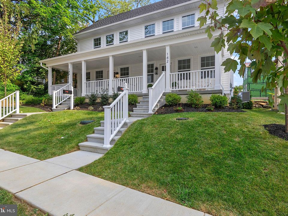 Newly Built in Narberth Borough – All New, Walkable, Move-In Ready 142 Merion Avenue presents a rare opportunity to own brand-new construction in the heart of Narberth, crafted by Craft Custom Homes as part of a thoughtfully planned five-residence project. This property has been reimagined to include two striking twins, two single cottages (one already sold), and the original home, relocated on the parcel and currently undergoing full renovation. Backed by more than 20 years of experience, Craft’s multigenerational team is known for delivering exceptional quality and design from concept to completion. Set on a quiet, tree-lined, walkable street with sidewalks, the neighborhood is vibrant, with many homes undergoing stylish renovations and improvements. Merion Ave’s curb appeal is undeniable, with landscaped grounds, crisp white siding, and a welcoming covered front porch—perfect for morning coffee or simply enjoying the activity of the block. Offering 3,440 finished square feet across four levels (2,521 sq. ft. above grade + 919 sq. ft. lower level), with 4 bedrooms, 3 full baths, and 2 half baths. The interiors are entirely new, showcasing light oak hardwood flooring, sophisticated fixtures, and a bright, thoughtfully designed floor plan that blends modern comfort with timeless style. The main level is designed for both entertaining and everyday living. From the covered front porch entry, light white oak hardwood floors flow through the expansive family room, the dining room with a triple window, and the sunlit gourmet kitchen. The kitchen features white and light wood cabinetry, a quartz center island with seating for four, tile backsplash, and premium stainless-steel appliances from Kieffers, including a GE 30” Smart Range, wall-mounted hood, and 24” dishwasher. A nearby walk-in pantry and stylish powder room add convenience, while a door off the kitchen opens to the rear patio—ideal for grilling or dining outside. Beautiful, modern light fixtures throughout the home provide a refined finishing touch to this level. The second floor features a primary suite highlighted by a large bay window and two generous closets, including a walk-in. The luxurious en-suite bath offers a double sink vanity, wide-format tile flooring, a spacious glass-enclosed shower with striking tile work, and a separate water closet. Bedroom 2 is also on this level and includes its own stylish full bath with shower/tub and walk-in closet. A conveniently placed laundry room , along with a large hall closet, adds everyday function. The third floor includes two additional bedrooms, one featuring a charming window seat, along with a full hall bath with tub/shower. The third level also offers a large open room with windows and a desk area—an ideal setting for a home office or study nook. The finished lower level adds incredible versatility, featuring a spacious bonus room, a powder room, and plenty of room for media, play, fitness, or hobbies. Lifestyle and location are second to none. Just 0.3 miles from the Narberth train station, residents enjoy direct service into Center City. Whole Foods, the beloved Narberth Theater, cafés, boutiques, and everyday conveniences are all within walking distance. Nearby communities—including Bala Cynwyd, Ardmore, Merion, and Bryn Mawr—offer premier dining, shopping, and cultural amenities. Parks such as Merion Botanical Park, Sabine Park, and Narberth Playground provide green space and recreation, while local traditions like the July 4th fireworks and the seasonal farmers’ market foster a true small-town feel. Situated in the award-winning Lower Merion School District, these homes deliver the rare combination of new construction, refined finishes, and a highly walkable location in one of the Main Line’s most desirable boroughs.