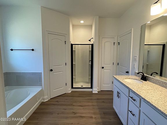 - High Ceilings, Crown Molding, Double Vanity, Dual Closets, Kitchen Island, Separate Shower, Varied Ceiling Heights, Walk-In Closet(s), Granite Counters