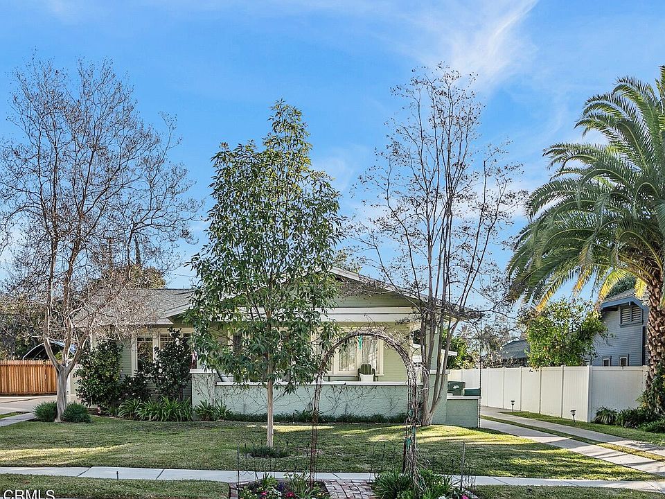 Just north of Foothill Blvd and Old Town Monrovia, this charming 3-bedroom Craftsman is full of architectural character and updates including a gorgeous chef's kitchen, owned solar, light-filled open living space and a private entertainer's yard. Spanning roughly 1/4 acre on tree-lined Magnolia Ave, the picturesque property welcomes you home to a covered front porch and landscaped yard joined by two generous driveways with a detached garage and RV parking. Inside, rich millwork and wide-plank floors begin in the formal dining room and extend throughout the common areas to create an especially inviting interior. The updated gourmet kitchen pairs rustic design elements with a large breakfast-bar island, white shaker cabinetry, mosaic tile backsplash, dual Viking ovens and additional high-quality stainless steel appliances. The open layout flows effortlessly to the living room with a decorative fireplace, skylight, open-beam ceilings, and bright French doors that beckon outside to a pergola-covered patio. Relax and entertain as you dine under the stars, grill at the built-in BBQ station, and enjoy the tranquil seclusion of your spacious, fenced lawn backed by mature trees. The primary suite has direct access to the yard, vaulted open-beam ceilings and an updated en-suite bath with frameless glass shower, while an updated jack-and-jill bath conveniently connects the two secondary bedrooms. All within a few short blocks of Foothill and Monrovia shops and restaurants, top-rated Mayflower Elementary, the 210 freeway, Library Park, and other amenities of this sought-after neighborhood.