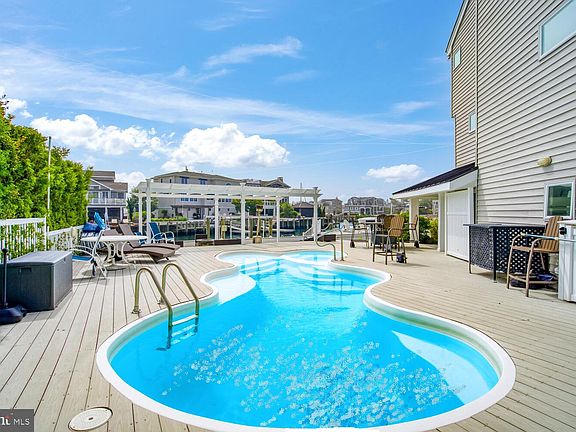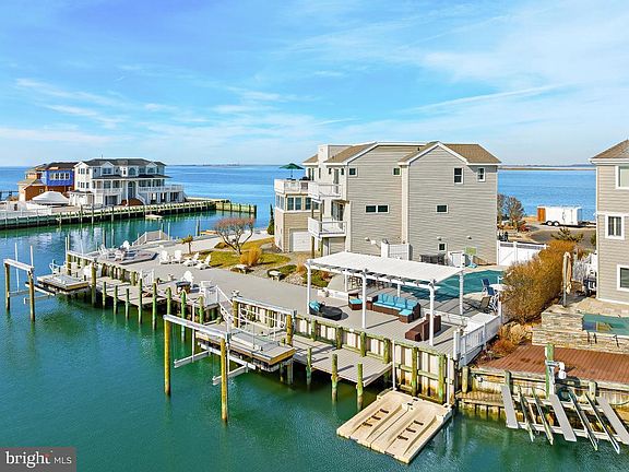 LBI. An Extraordinary Bayfront and Lagoon Oasis. This unique property is located in the pristine area of Southport in Holgate. 360 views from the rooftop deck and sunrise to sunset are presented from every room in the house. The front entry faces the Bay and is beautifully paved with plenty of parking plus two attached garages. The home features; 3650 sq. ft, 5 huge bedrooms, 3 full baths, 2 half baths, an enclosed sunroom, an office, an open floor plan, a gas fireplace, multiple decks, and brand-new railings. The exterior is nothing short of spectacular and features; an inground pool with a heated spa, brand NEW indoor/outdoor all-season bar & kitchen with an aged Hemlock wood countertop, built-in heaters, locking roll-up steel doors, custom window wall, nonslip ceramic flooring. There is approx. 170 feet of water frontage and approx.192 ft of dock frontage that can host up to 7 boats plus two brand new hurricane brand ‘ High-Speed' boat lifts. The 1st can accommodate a 20,000 lb, 42ft. boat and the 2nd is a 10,000 lb. lift for a 26 ft boat with 2 additional waverunner floating docks. Luxuriate under the new shading pagoda, 2 built-in gas fire pits overlooking this wide lagoon. A short walk to an immaculate uncrowded white powdery sand beach that makes LBI famous. The private Southport Bay Beach with a lifeguard and playground is at the end of this cul-va-sac. Only minutes to Fantasy Island amusement park, shops, and Zagat-rated restaurants. This property is perfect for entertaining or a life of relaxation and leisure only available to a chosen few.