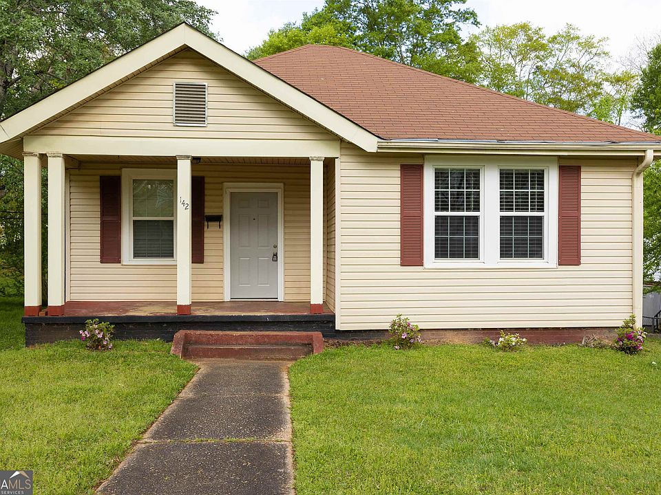 Adorable bungalow in sought after Silvertown Village! Fresh paint throughout the inside, newer light fixtures, newer floors, and updated appliances. Home features 2 bedroom, 1.5 updated bathrooms, beautiful dark stained vinyl floors, cozy back porch, laundry/mud room, updated kitchen with white cabinets, and partially fenced spacious back yard. Close to downtown, shopping, and dining.