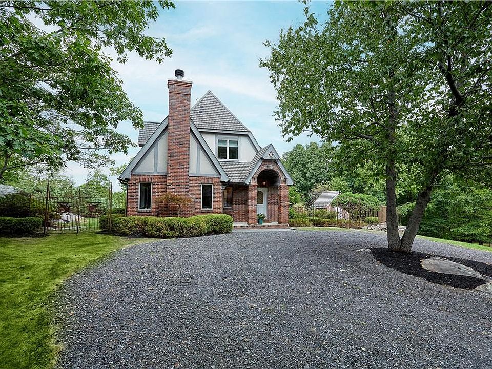 Oak Haven is what dreams are made of. Set high bordering parkland, this charming and remarkable property located on a cul-de-sac with imposing iron gate entry. From the first moment traveling the gentle winding drive on this spectacular 9.2 acres you somehow know you found your slice of heaven. This charming brick cottage was custom built in 1998. The unique design with great attention to detail has the grandeur of a much larger home. Sweet, covered entry porch opens to lovely foyer. The scale and flow are perfect accented by wide board white oak flooring and generous windows featured throughout. The living room features a high efficiency wood-burning fireplace and built-in bookcases. Large entry leads to formal dining room. French doors open to patio, a lower sitting area and fenced in formal gardens perfect for entertaining family and friends. Recent renovation and upgrades notably in kitchen with beautiful custom cabinetry and all the amenities to please any chef. An elegant powder room completes first level. Second floor features Primary Bedroom and second bedroom. Full Bath with a room framed and ready for an additional full bath if desired. Lower level can accommodate 2 additional bedrooms and expand shower to full bath. A two-car garage, charming brick garden shed, and firewood shed are both conveniently located. Oak Haven is elegant but casual stunning country home with Private Lake Rights. Additional Information: HeatingFuel:Oil Above Ground,ParkingFeatures:2 Car Detached,