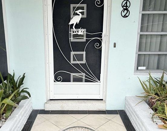 This Mid-Century Charmer is the perfect starter home for a couple or a small family to call their own! You can tell by the condition of this Lovely Home that it has been updated and improved...well-maintained and well-Loved by the owners over the years. This home features SPACIOUS OPEN LIVING/DINING/FAMILY AREAS, opening to a remodeled Kitchen, 2 spacious Bedrooms and 2 remodeled Bathrooms. The Roof was replaced 7 years ago, and the main Electric Panel was updated, and a Brand New high-efficiency Air Conditioning System installed just 1 month ago, with transferrable warranty! This home features Custom Verticals throughout, new doors and hardware...and original Terrazzo Flooring, along with travertine marble and ceramic tiles. All Appliances are included in this home sale. Outdoors boasts a spacious 1/3 acre lot with a private tropical backyard with a 6 foot stockade fence. Also featured is a screened in back porch/lanai, a garden shed, outdoor shower, and a large under-truss storage room off of the attached carport. You'll find plenty of storage throughout this property, and plenty of parking with a large paved Circle Driveway, and carport. Enjoy walks in this Peaceful Neighborhood, and Beautiful Sunrises or Breathtaking Sunsets over the Caloosahatchee River!