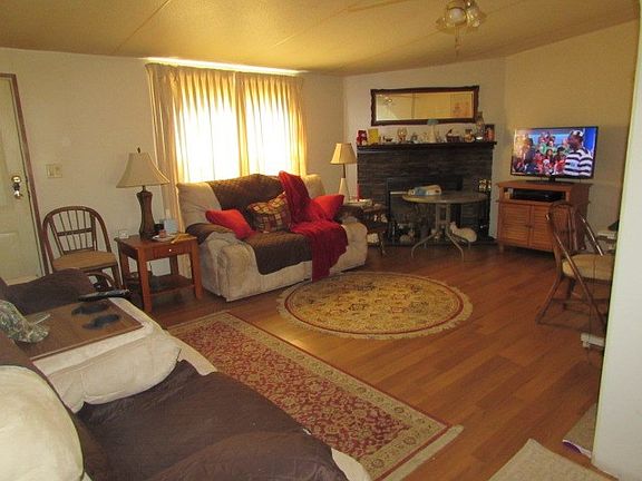 Own a lot for little. This 3 bedroom, 2 bath home sits on a mostly level 5.14 acres with a 2 car detached garage. Home has amenities including 6 panel doors, laminate floor, newer carpet, update baths, heat pump and newer roof. This home has lots of natural light with Kitchen being open to dining area with an island. There is a wood burning rock fireplace in the living room for cozy evenings. Outside you also have an open front deck and a large open back deck. This home is on a corner lot and is a must see for the money. Call today.