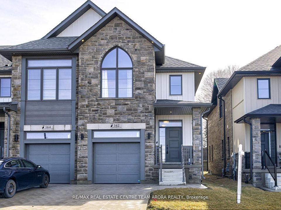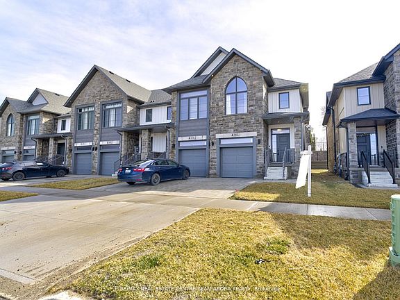 Welcome to 142 Queensbrook Crescent, a beautifully designed freehold end-unit townhome in the highly desirable Westwood Village community. This home sits on a premium lot and comes with the added benefit of no condo fees. The main floor features an open-concept layout with elegant engineered hardwood and tile flooring, seamlessly connecting the living, dining, and kitchen areas. The modern kitchen is highlighted by a large island, quartz countertops, and plenty of natural light from the expansive windows, creating a warm and airy atmosphere. Upstairs, you'll find three spacious bedrooms, including a primary suite with a walk-in closet, a luxurious ensuite with double sinks, and a glass walk-in shower. The convenience of second-floor laundry adds even more functionality to the home. Built by Ridgeview Homes, an award-winning builder, this property showcases quality craftsmanship and premium finishes throughout. Located within a thoughtfully planned community, residents have access to local shops, restaurants, downtown Cambridge amenities, parks, scenic trails, and a proposed future school. Dont miss the chance to own a home in one of Cambridges most sought-after neighbourhoods.