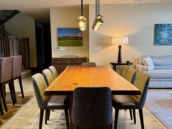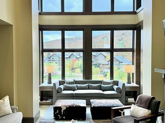 This is your opportunity to own a home in one of the most sought after locations at Spruce Peak. This four plus bedroom in the exclusive Club Residences is being sold fully furnished and is move-in ready. A grand two story residence with double height ceilings, and tall floor to ceiling windows to match, this home has a large eat in gourmet kitchen, dining room, great room, primary, guest suite (with two queen beds), and bunk room all with en-suite baths and a fourth guest bedroom as well. There is also a large loft family/game room with space for everyone and a pool table. Located on the fourth and fifth floors this home has views of the trails on Mt Mansfield from all rooms and its location right on the Village at Spruce Peak means you are only steps away from the Village Green and skating rink, Club at Spruce Peak, Spa, pools, dining, shopping, Performing Arts Center, concerts on the green, and of course, skiing. Don’t miss your chance to own one of the best homes at Spruce Peak, just in time for this ski season.