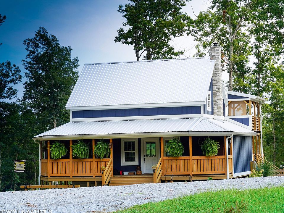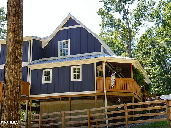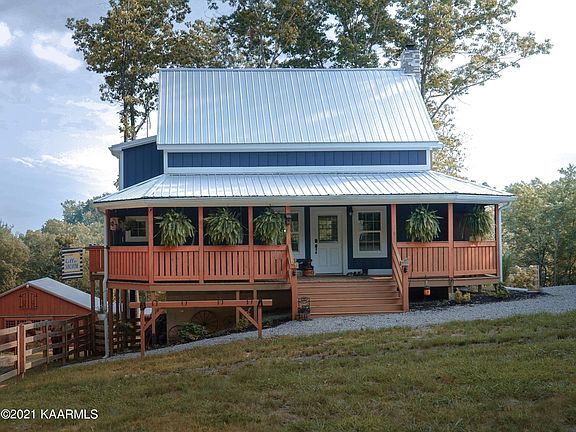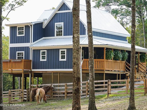 One of kind custom home that is an Equestrian Lover's dream. Located in the highly sought after Ridgetop Acres. Although this home offers direct trail access into Big South Fork National Park, you'll never run out of private trails within the community. This home has A beautiful Mountain View and a COMPLETE RENOVATION- And is a smart house, wired with Alexa! New roof, gutters, windows, doors, pex plumbing and electrical. The stunning 1'' thick oak floors were harvested from the property. Open concept, but still has a cozy feel that welcomes you into the living space. The entire upstairs is one large Master suite with a large walk in shower! There is also a large walk in closet with washer and dryer hook ups. Beyond the suite, there is a balcony over looking the property. Off the master bedroom you can relax in your Solana hot tub! The main level has a kitchen, dining room, walk in pantry, and a small bedroom. The kitchen has all new, solid wood cabinets with self closing doors, and the counter tops are solid concrete. The small room could be used for a child's play room or office. Great room has a wood burning stove. There is an unfinished, cement poured, walk out basement that also serves as a bunker. It could be finished into a 2nd bedroom/ man cave/ or theater room! It is already plumbed for a bathroom. The barn is 24x36, with a 12' center aisle, made of Hemlock. There are three 12x12 stalls, a 12x12 area for tack, 12x24 hay loft, and a 12x24 over hang to keep your ponies dry. In the pasture, there is a Bar Bar A waterer that was installed in 2020. The entire property is cleared; however only partially fenced- with wood. This four board fence was was built in 2020. There has been a 60' round pen started. The property also has a flowing creek and a large cave Also, there is a wood burning stove in the living room. The chimney is there. Appliances are Kitchen Aid, except dishwasher which is a Bosch. Septic was just cleaned out.