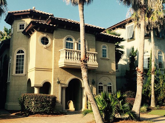 This Spanish tutor style home is one of thirteen homes surrounding one of the most beautiful pools in the Destin area. This gated community provides the ambiance of authentic Spanish design. From the cobble stone streets to the plush tropical landscaping the designer spared no expense. Once you enter the home you will find first class materials with intricate tile floors, travertine baths, granite counter tops, twelve foot ceilings, and top of the line appliances. Wow!!! Just a four minute walk the the pristine white sand beach of miramar. Like to read ? Full length slider doors brings the outside in when you sit and relax on the full length lanai overlooking the breathtaking pool area. This home has it all.