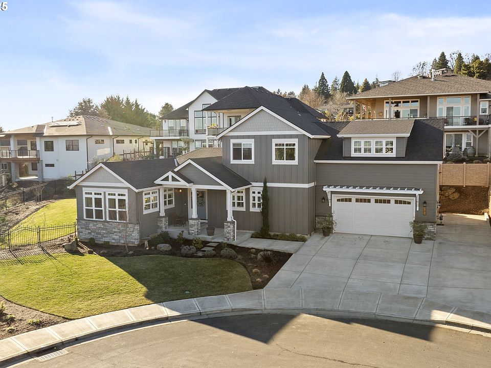Luxury meets comfort in this stunning home, built in 2022, situated on a beautifully landscaped 0.28-acre lot in an upscale cul-de-sac. The open-concept design seamlessly blends the living, dining, and kitchen areas, highlighted by vaulted, beamed ceilings and an abundance of natural light. The interior boasts luxury vinyl plank flooring and plush carpet throughout. The chef’s kitchen is a showstopper with honed granite countertops, a massive island with bar seating, stainless steel gas appliances, and a spacious walk-in pantry. A private home office or den with elegant French doors provides a perfect space for remote work or quiet study. The main-level primary suite is a true retreat, complete with a spacious walk-in closet and a spa-inspired bathroom featuring heated tile floors, a tiled walk-in shower and dual sink vanity. Upstairs, you'll find two generously sized auxiliary bedrooms, a full bath with a shower/tub combo and double sinks, plus a versatile bonus room ideal for a media space, home gym, or hobby area. The east-facing windows on the second level showcase breathtaking views of the Cascade Range and offer glimpses of Mount Hood on clear days. Step outside to enjoy the beautifully maintained yard year-round from the covered deck. The oversized 2-car garage provides additional storage space, and there's even potential room for RV parking. Subject to seller finding suitable replacement property.