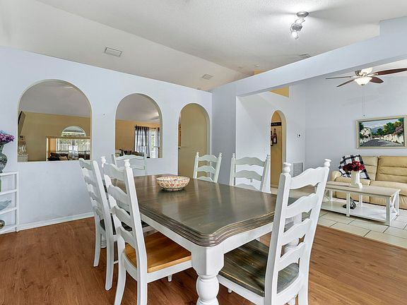 Discover the epitome of comfortable living in this 4-bedroom, 2-bathroom pool home. Unwind in the serene, fenced-in yard and patio, ensuring privacy and tranquility. With spacious interiors, including tile flooring throughout and laminate flooring in some of the bedrooms, this residence offers a perfect backdrop for both relaxation and entertaining. The open kitchen is a highlight, featuring ample space, stainless steel appliances, chic grey cabinets, and a convenient snack bar. The 2-car garage, easily accessible from the kitchen, adds to the home's practical design. The master bedroom is situated on a separate side, offering its private bathroom and a walk-in closet. Embrace the Florida lifestyle with a pool, pool heater, enclosure, child safety barrier, and utility shed. This home is not just a residence; it's a haven where every detail has been considered for your comfort and enjoyment.