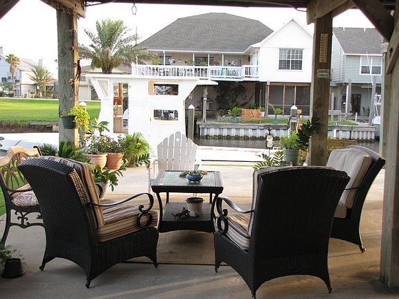 Canal water front home in quiet bay house community, Hide-Away-On-the-Gulf. 3 bedrooms, 2 baths with breakfast area overlooking the canal. Master has new screened in privacy porch. Large family room with covered porch right outside. Fully furnished - all furniture stays. Covered boat dock with electric boat sling and large deck. Fish cleaning table. Concrete drive and patios. Garage and extra bunk room with 1/2 bath downstairs.