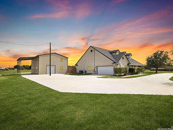 Welcome to country living with modern comfort in the highly sought-after Shannon Ridge subdivision! This spacious 3-bedroom, 2-bath home sits on a generous lot with plenty of room to roam. With no HOA and farm animals allowed, you'll enjoy the freedom of rural living while still being close to San Antonio conveniences. Step inside to find an inviting open floor plan filled with natural light, a large living room, and a cozy dining area perfect for gatherings. The kitchen offers abundant counter space, cabinetry, and a breakfast bar for casual dining. The oversized primary suite features a private bath and ample closet space. Outside, the property shines with features you'll love: Circular driveway for easy access and guest parking, Covered carport and plenty of parking space, Large shed for storage or workshop needs, Wide front porch perfect for relaxing evenings, Fenced acreage suitable for farm animals, gardening, or future projects. Enjoy sunsets and peaceful views under the wide Texas sky while living in one of Floresville's most desirable subdivisions. Don't miss your chance to own this rare find in Shannon Ridge-schedule your showing today!