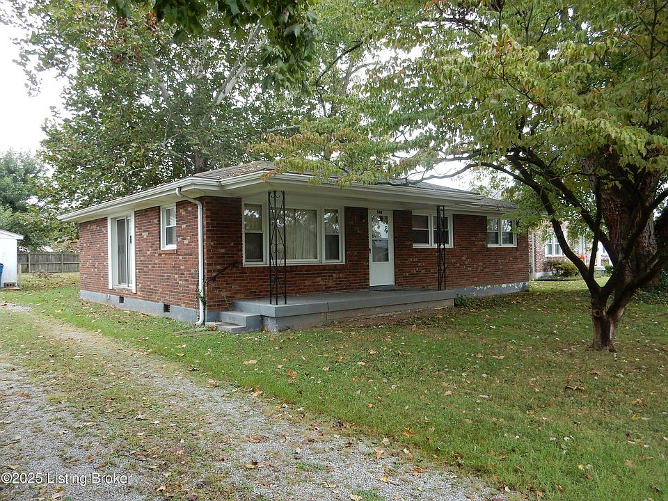 3 BR/2 bath ranch in convenient area, close to schools and I-65. Mature trees on a fenced flat lot. Hardwood flooring under the existing carpet. Large detached garage. Needs some updates.