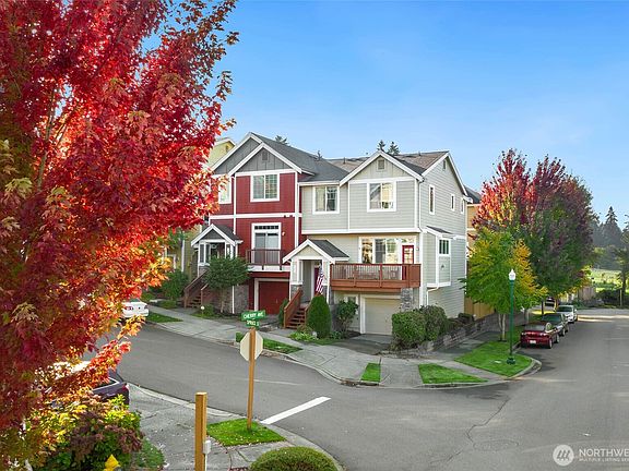 Updated corner home, bathed in natural light! Living room seamlessly connects to the dining area and kitchen, making it ideal for entertaining. Kitchen boasts granite countertops, elevated breakfast bar, stainless appliances, and a deck perfect for outdoor enjoyment. Two additional outdoor living spaces include a deck off the living room and a fenced patio area. Upstairs, you will find convenient laundry room and two additional spacious bedrooms. The primary suite offers a walk-in closet with a custom closet system and en suite bath. Oversized 2-car tandem garage with extra storage and an alarm system for your peace of mind. Great location near highways, shopping, and dining. Mortgage savings may be available for buyers of this listing!