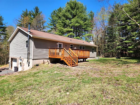 Motivated seller! Calling all nature lovers! Do not pass up this opportunity to own this 3 bedroom, 2 full bath ranch home on gorgeous 21+ acres. Substantial eat-in-kitchen with gas stove, dishwasher and plenty of cabinet/countertop space for the home chef. Step out of kitchen to new deck for morning coffee. Spacious living room with wood floors, large primary bedroom and bath with jet tub, double vanity and rain shower stall. 2 more bedrooms with closets and another full bath with tub. Sizeable finished basement with wood stove for family room, art studio, movie room, kids play room or office. Walk out to 1 car garage with plenty of storage space. Front of house has another sundeck and gazebo with hot tub. Tremendous grassy knoll leads to storage shed and great barn with 2 bays, water, electric, 2 horse stalls, hay storage and chicken coop. Paddocks, stone walls, pines, hardwoods, fruit trees, open meadows and trails. Tucked up off a quiet country road this property has endless uses. Hunters welcome! Deer, fox, turkey and plenty more local game. Have a mini farm, go cross-country skiing, 4 wheeling and foraging in your own private forest. Nearby Bethel Woods Center for the Arts, festivals, breweries, waterfront dining, lakes, mountains and rivers. Call to take the tour.