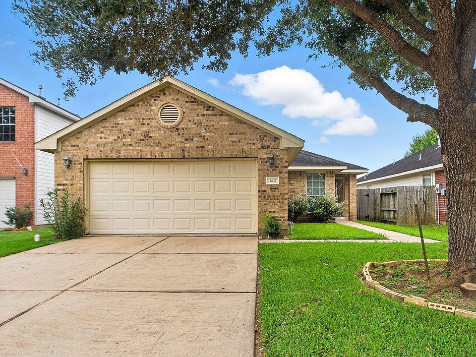 Welcome to Brazos Village! Lovely one story home with 3 bedrooms and two full bathrooms. Open floor plan with spacious living area. Living area is very cozy and gets plenty of light throughout the day. New carpet was installed throughout the home. Has a spacious primary bedroom with primary bath inside. Bathroom has a soaking tub and walk in closet connected to the primary bathroom. Other 2 bedrooms are located near the 2nd bathroom down the hall. Other features include faux blinds and ceiling fans. The kitchen is equipped with a gas stove and plenty of cabinets for storage. Appliances such as refrigerator, washer and dryer are included. Home has a large backyard. No neighbors behind. Great community with access to 59 & 99 freeways, great schools, HEB and other specialty stores near by. Make this one your home.