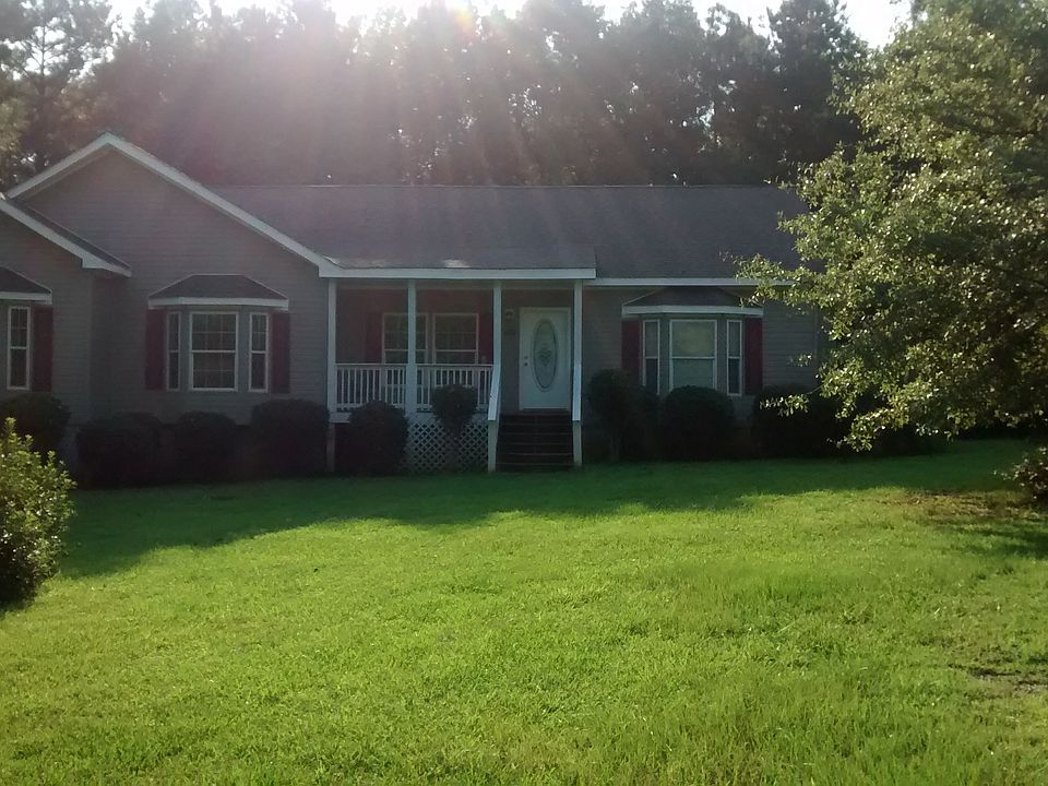 Looking for privacy in Jones County? This one level vinyl sided home sits on 1.62 acre lot at the end of a cul-de-sac. Open floor plan has large living room with 9ft. ceilings & crown molding, plus den off kitchen with stone fireplace, breakfast room with bay windows, bar top in kitchen with all appliances, oversized laundry room has side entrance off back deck. Split bedroom plan has huge walk in closet in master, trey ceiling, garden tub, glass enclosed shower and linen closet. 3 more bedrooms, one with it's own private bath off den. This one will go quick!
