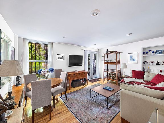 Enjoy true indoor/outdoor living with exclusive use of a lush and verdant South facing garden, directly accessed from the living room, with a pond, mature trees, and outdoor lighting. This tranquil one bedroom oasis feels like a charming house in the middle of the city. It has a renovated kitchen with stainless steel appliances, an additional sizable area which easily serves as a guest room or office, a renovated bathroom and excellent closet space. Other features include through the wall air-conditioning, hardwood floors, exposed brick, convenient access to the common laundry, and abundant prewar charm.