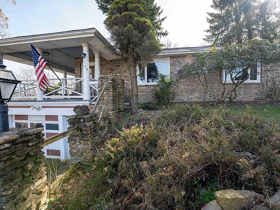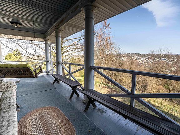 Hidden gem has a lot to offer, starting with a panoramic view of city. This 4 bedroom, stone ranch with plaster walls is on a dead end street plus 0.74+/-acre. Has a 23'x 11' outbuilding, workshop, gathering room with stone fireplace, numerous built-ins and wrap around porch. Some rooms have wood floors under carpet. Chairlift, Security System, Basement Waterproofing system and more.