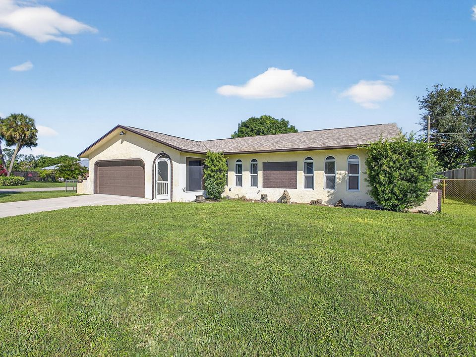Charming 3/2 CBS home on corner lot in desirable Florida Gardens neighborhood. Florida Gardens is conveniently located off Lake Worth Rd and only 1 mile to turnpike entrance. No HOA fees! Home features newer roof (2023), new hot water heater, new front door, impact windows, transferrable termite bond and new carpet. The 0.28 acre lot is fully fenced and features a large mango tree and storage shed.