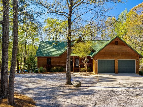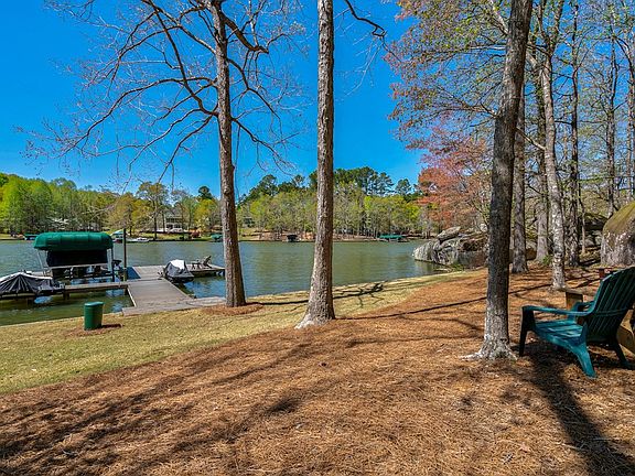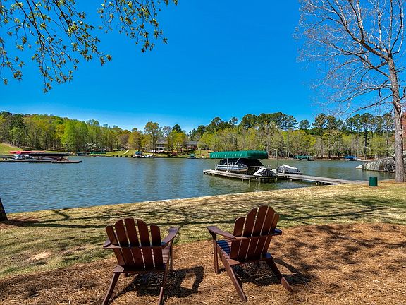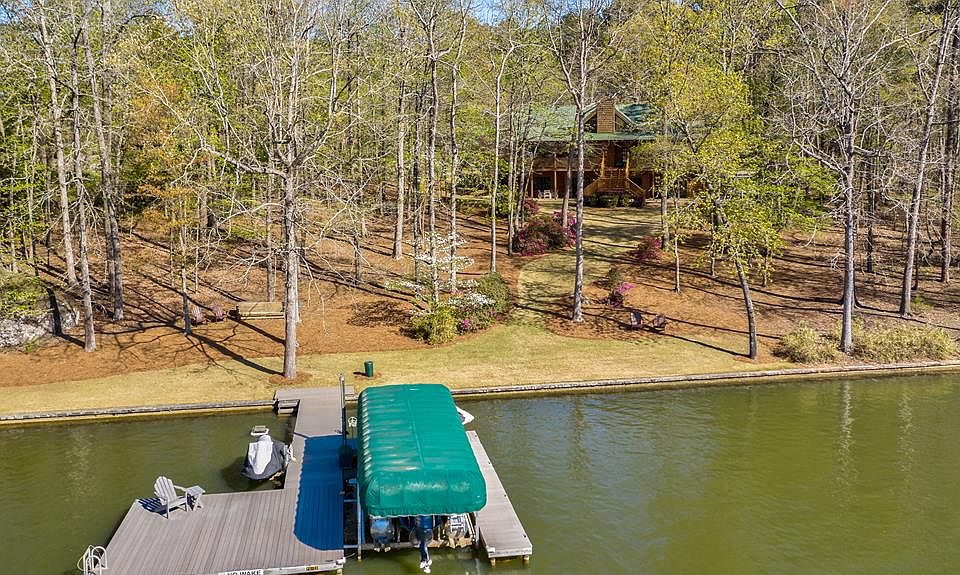 Log home on Lake Oconee.. Deep water,beautiful lake views. Immaculate property. This idyllic lake home is where memories are made! Perfectly positioned inside a protected wide cove with huge boulders and deep clear water at the end of private max composite dock with boat and jet ski lifts. Beautiful shoreline with granite capped seawall. Open main level with high beamed ceiling and fireplace. Master BR with lake views,private bath,separate shower and tub. Also located on the main level are 2 additional bedrooms, a full bath and large laundry and pantry area. Terrace level 2nd living area with kitchenette and wonderful lake views. 4th BR, 3rd FBA, extra room currently 5th BR on lower. Office area, workshop, huge covered deck, landscaping, RV/boat barn.